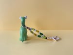 Gilly is made of ceramic while her lanyard is made of acrylic beads. Gilly is a semi fragile item, please treat her like you would a piece of jewelry.