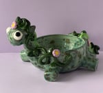 Venus is about 7.75 inches long, 5 inches wide, and 4.5 inches tall. Venus' bowl is about 2 inches tall and has a diameter of approximately 4.25 inches.